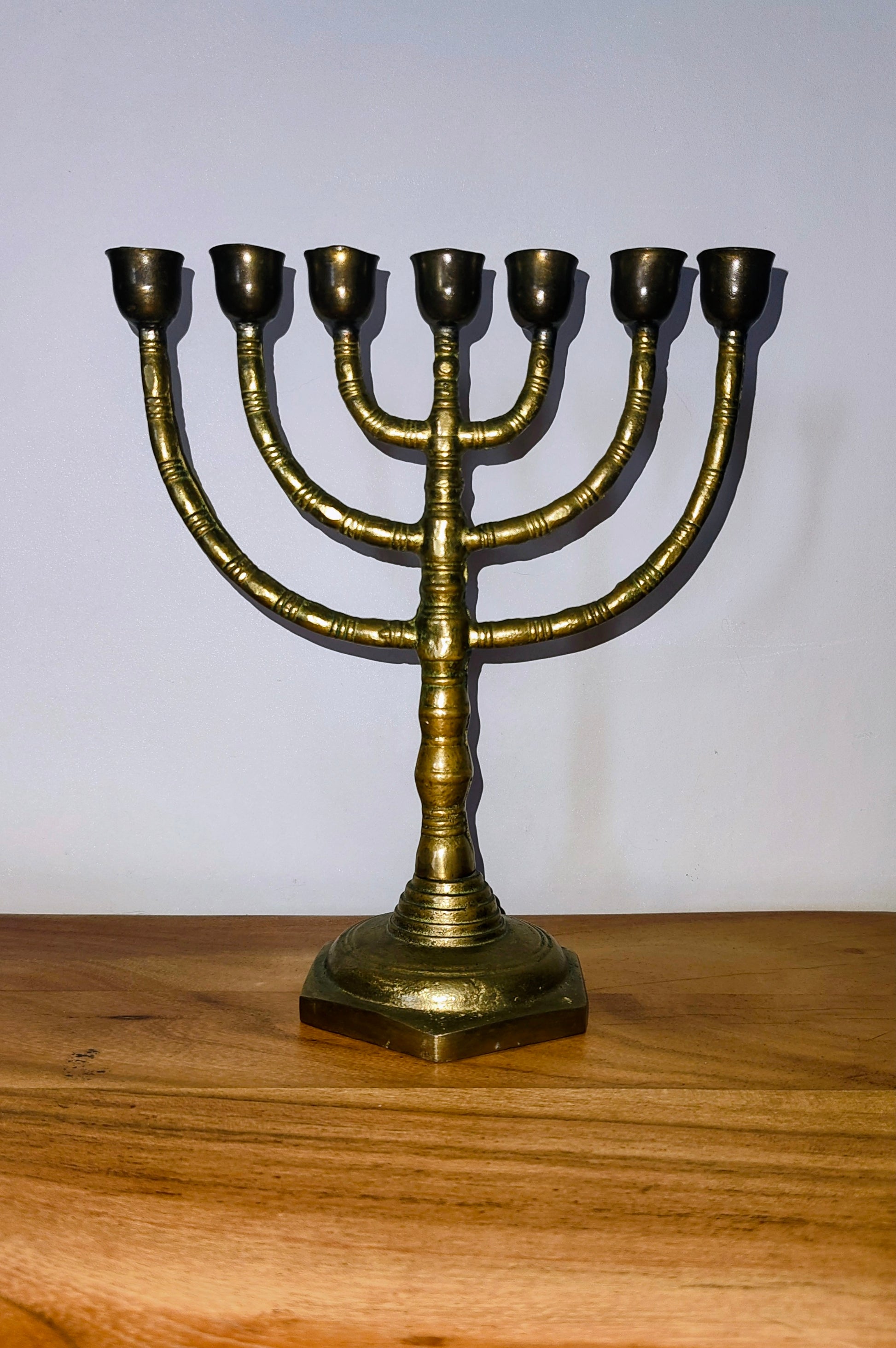 Diese Menora mit dem Namen Chai (חי – Leben) besticht durch ihre klassische, anmutige Form und ihre glänzende Erscheinung. Sie ist aus Messing gefertigt und wiegt ca. 1 kg.