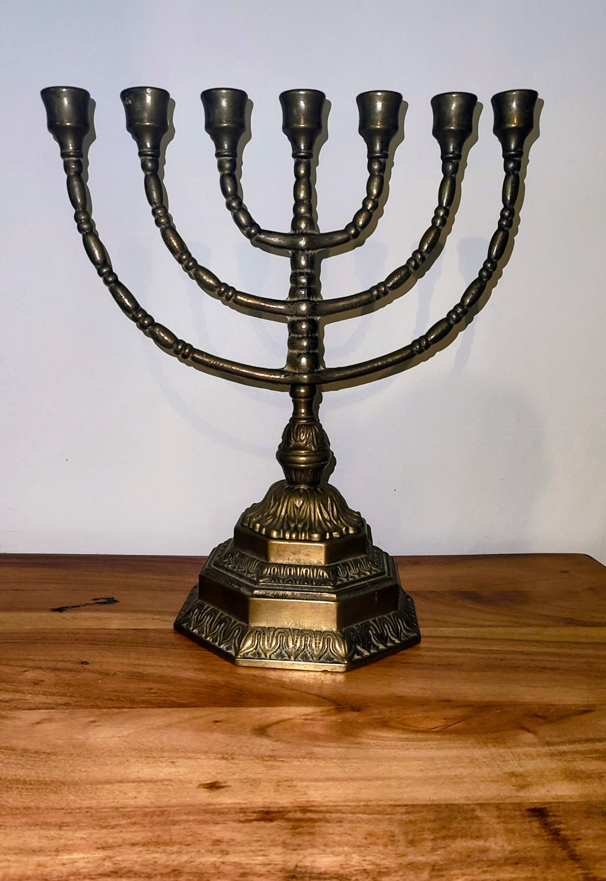 Das ist Liat. Wir haben diese massive, siebenarmige Menora (34 cm, 2,2 kg Messing) gefunden und wussten sofort: Sie braucht wieder einen Platz, an dem sie geschätzt wird.