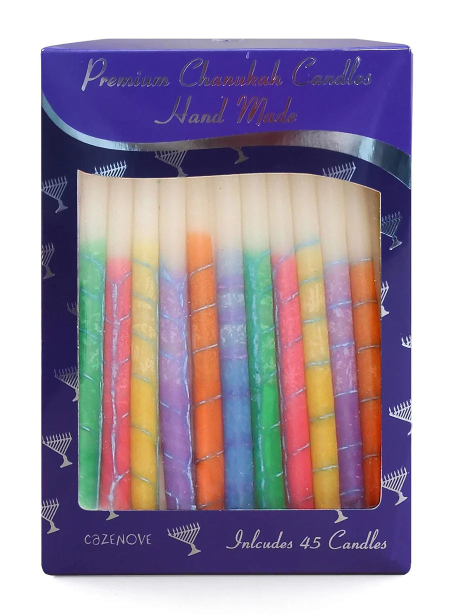 Premium Chanukka-Kerzen, Dekoriert Mehrfarbig, 45 Stück, 14 cm