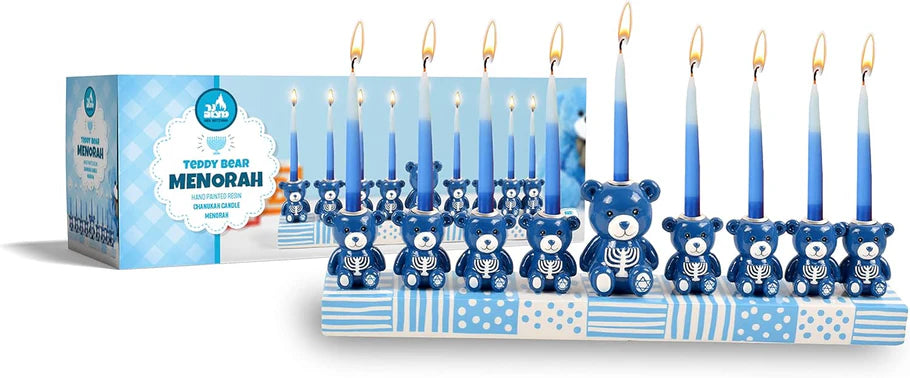 Diese liebevoll handbemalte Chanukkia aus hochwertigem Kunstharz begeistert durch ihr einzigartiges Teddy-Bär-Design – perfekt, um das Chanukka-Fest besonders für Kinder zu einem fröhlichen Erlebnis zu machen!